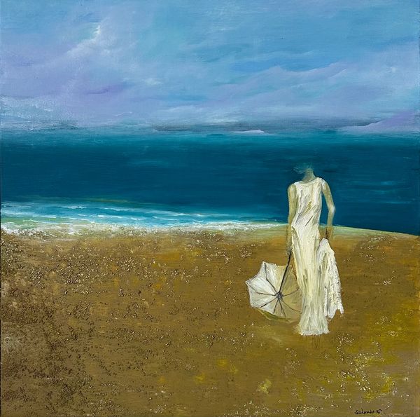 Lady by the Sea (2025), oil and sand on canvas, 60 x 60 cm
